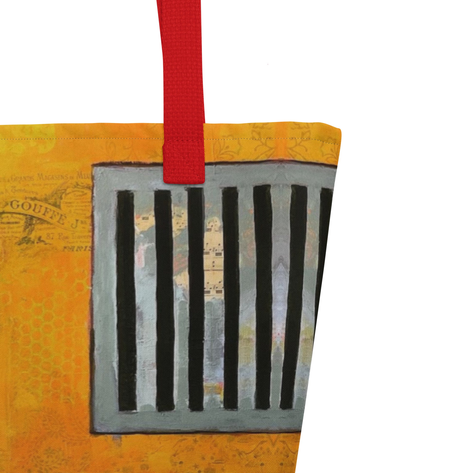 The design is based exclusively on original artwork by Chicago based gallery work SatisHfactory ART - 'Montmartre' is a mesmerizing 36x36" mixed media masterpiece that vividly captures the essence of Paris in late Fall, inspired by the artist's stay in the city during 2022. The painting is a part of the series that explores the influence of renowned artists Matisse and Diebenkorn on the artist's work, while also experimenting with unique subjects in a collaborative spirit.
