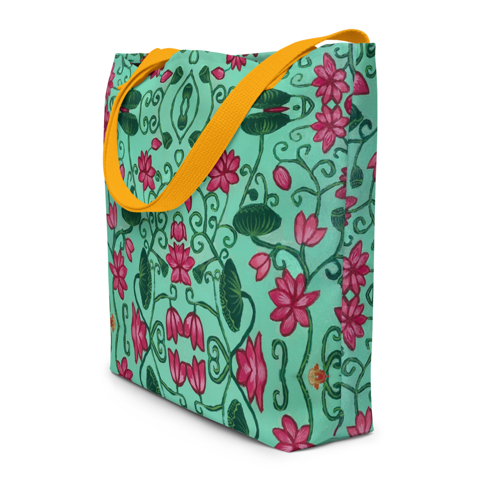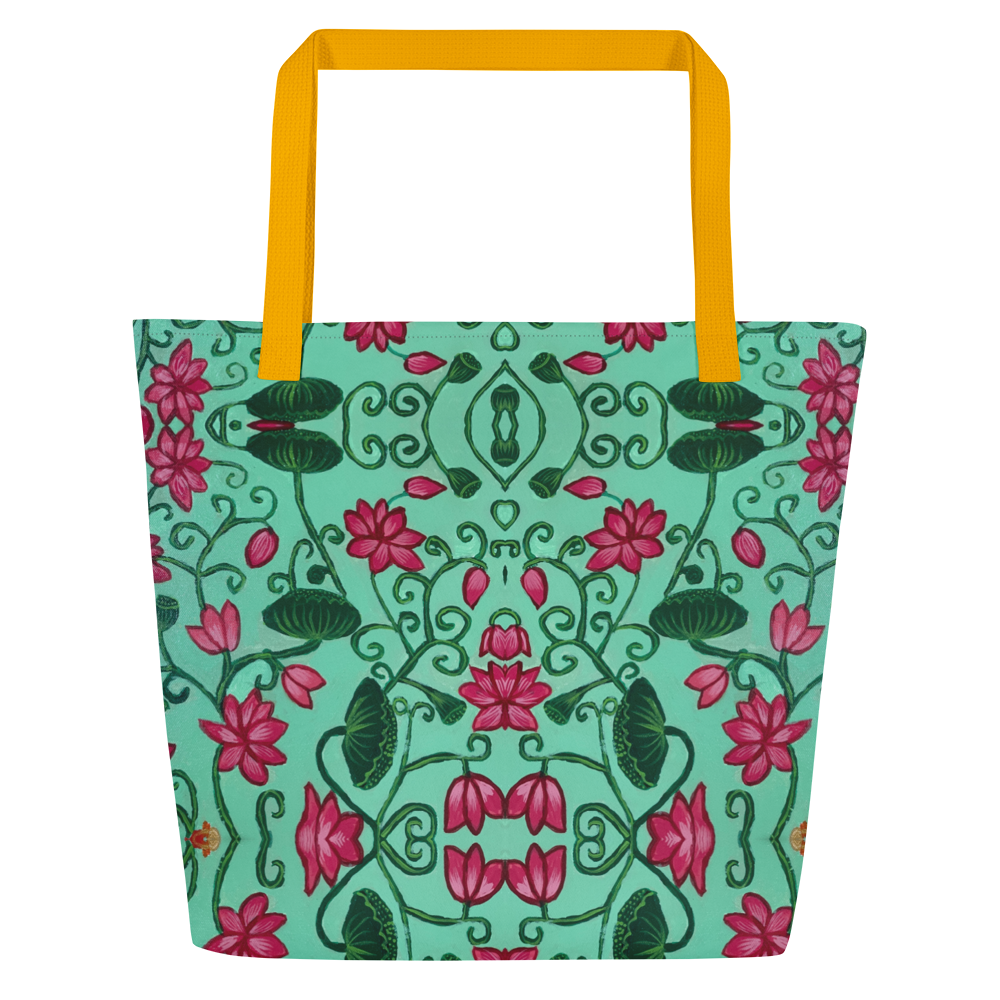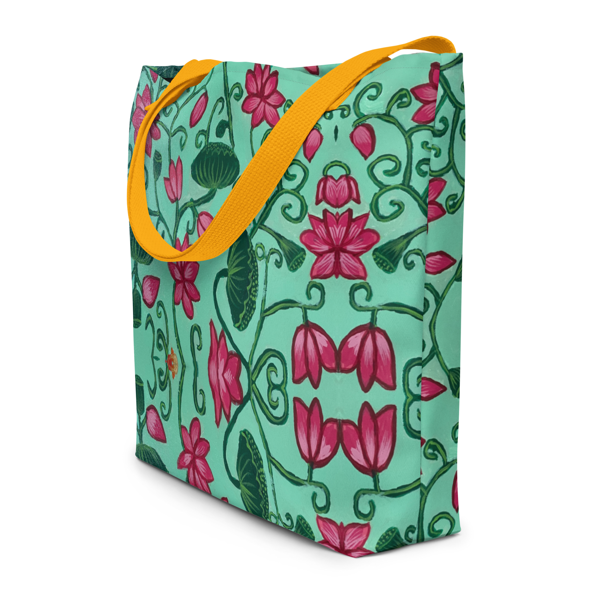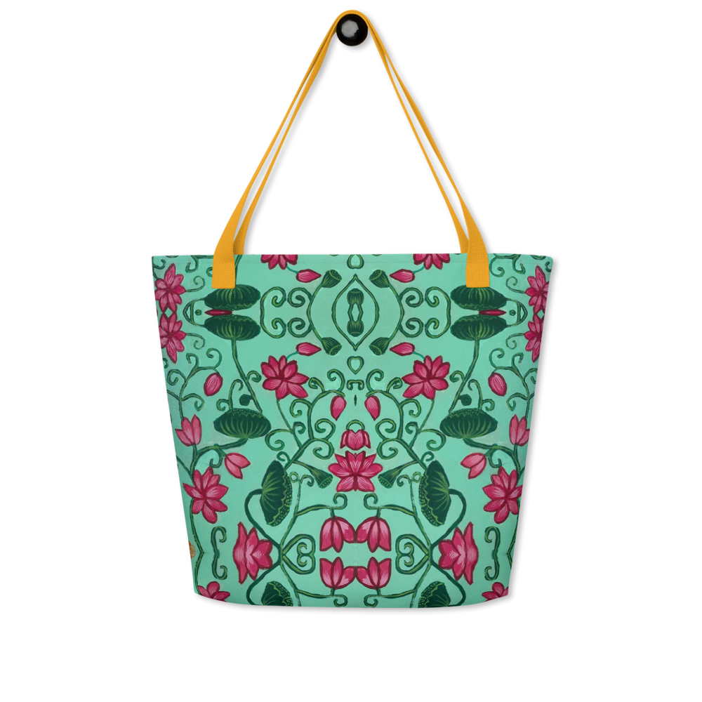 A trendy beach bag, by artist Vasudha Mann based on Pichwai traditional art in Rajashthan, India .