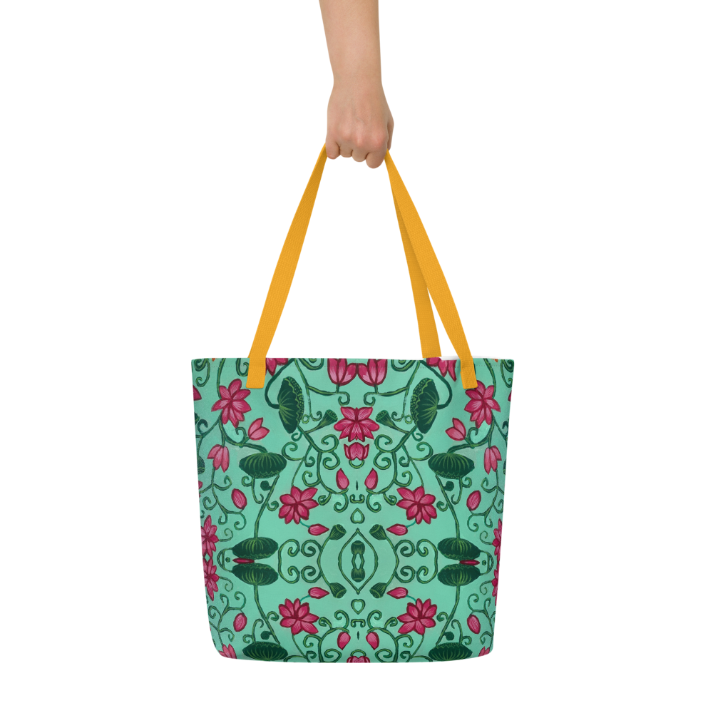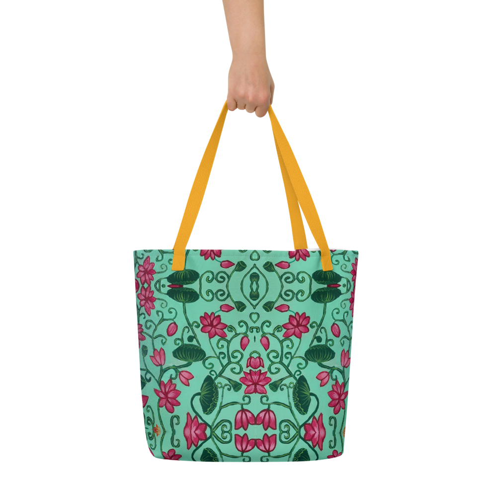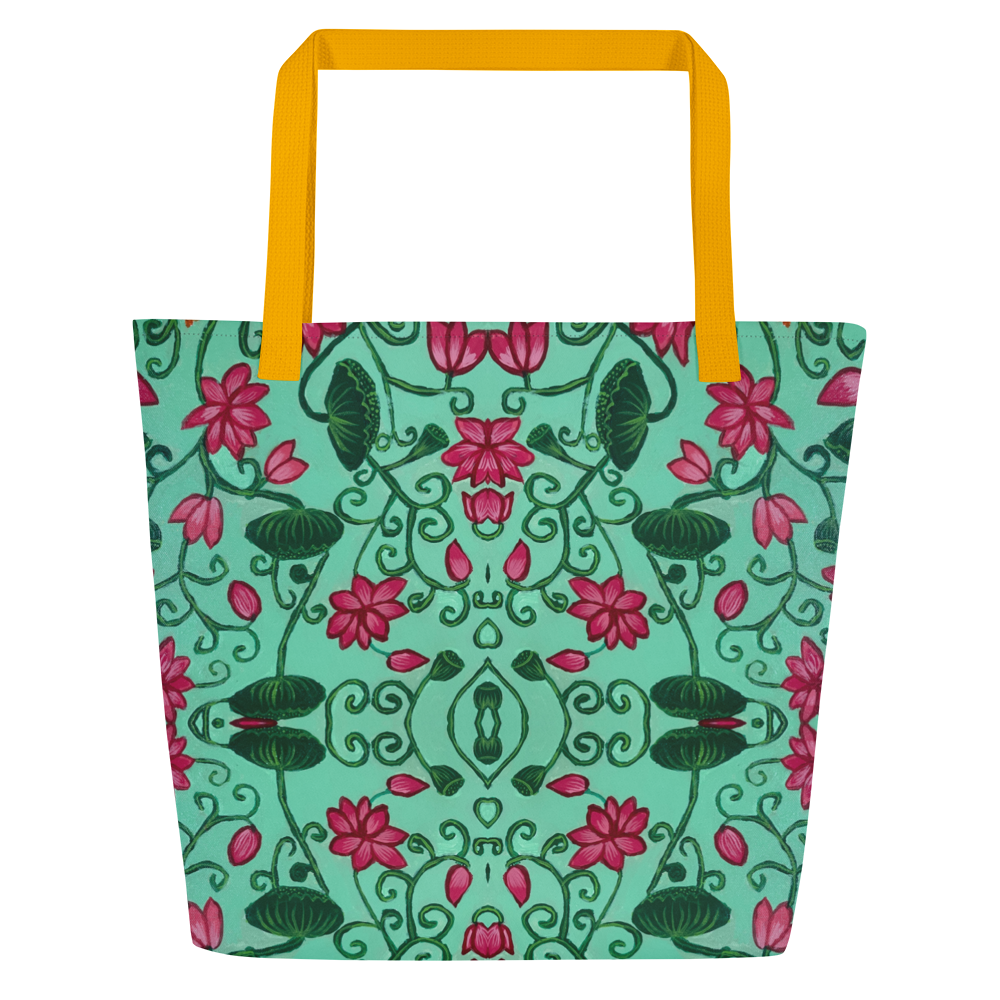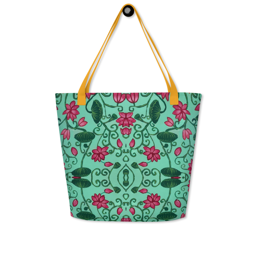A trendy beach bag, by artist Vasudha Mann based on Pichwai traditional art in Rajashthan, India .